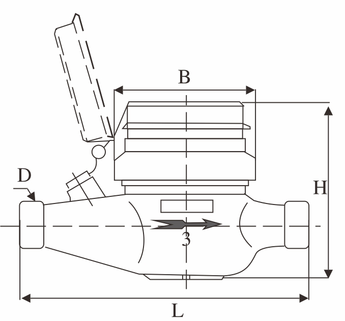 Lakóvízmérő nem visszatért szeleppel, lezárt nyilvántartás, IP68-ra. A szemcsék és a részecskék érintetlen.